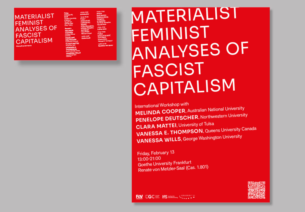 PlakatMaterialist-Feminist Analyses of Fascist CapitalismGoethe-Universität Frankfurt 2026 Entwurf und Umsetzung
